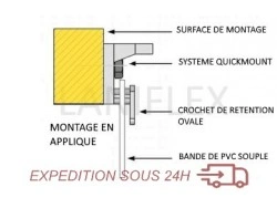 - la barre de fixation en aluminium ou en polypropylène pré-trouée peuvent se fixer, soit sous linteau, soit en applique (au choix).